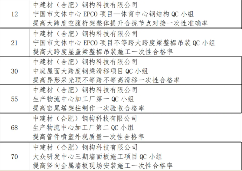 近日,在中國建筑業(yè)協(xié)會(huì)鋼木建筑分會(huì)主辦的2025年鋼木建筑行業(yè)工程建設(shè)質(zhì)量管理小組成果競(jìng)賽中,中建材鋼構(gòu)公司憑借卓越的質(zhì)量管理成果和創(chuàng)新實(shí)踐,一舉斬獲多項(xiàng)榮譽(yù),充分彰顯了其在行業(yè)內(nèi)的領(lǐng)先地位和綜合實(shí)力。